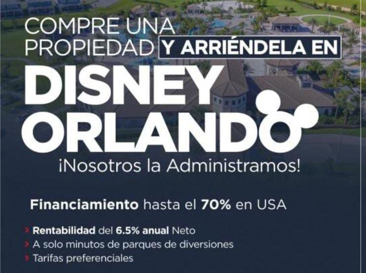 Venmobilia Spa- Bróker Inmobiliario, presenta excelente e imperdible oportunidad de Invertir en departamentos y casas de renta completamente amoblados, equipados con electrodomésticos y listos para ser ocupados en el suroriente estadounidense, específicamente; DISNEY- ORLANDO, negocio inmobiliario con una rentabilidad proyectada del 6.5 neto anual, con financiamientos de hasta el 70 % del valor del inmueble y tasas preferenciales para inversionista extranjeros. El proyecto en blanco denominado The Grove, ubicado a unos 15 minutos de los principales parques temáticos de Walt Disney World, contempla diversos condominios con estilo de centro turísticos, parque acuático, restaurantes, spa, tiendas, gimnasio, entre otros. Los precios oscilan desde los 2.600 Dólares Americanos por Mts2, desde los 38 mts2 en adelante. Agenda reunión Virtual al 942782291 para obtener detalles, tipología, características, condiciones y rentabilidades del proyecto.